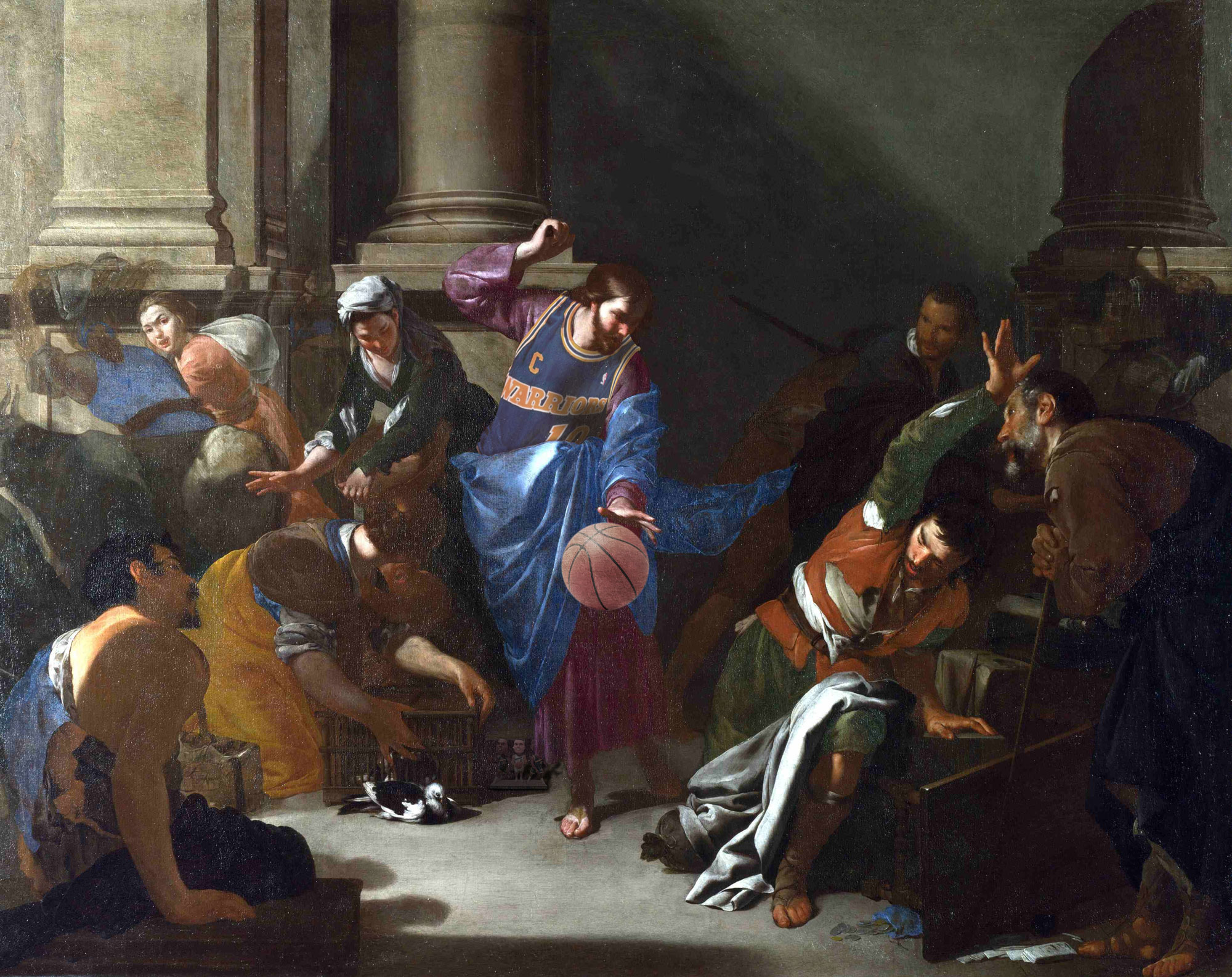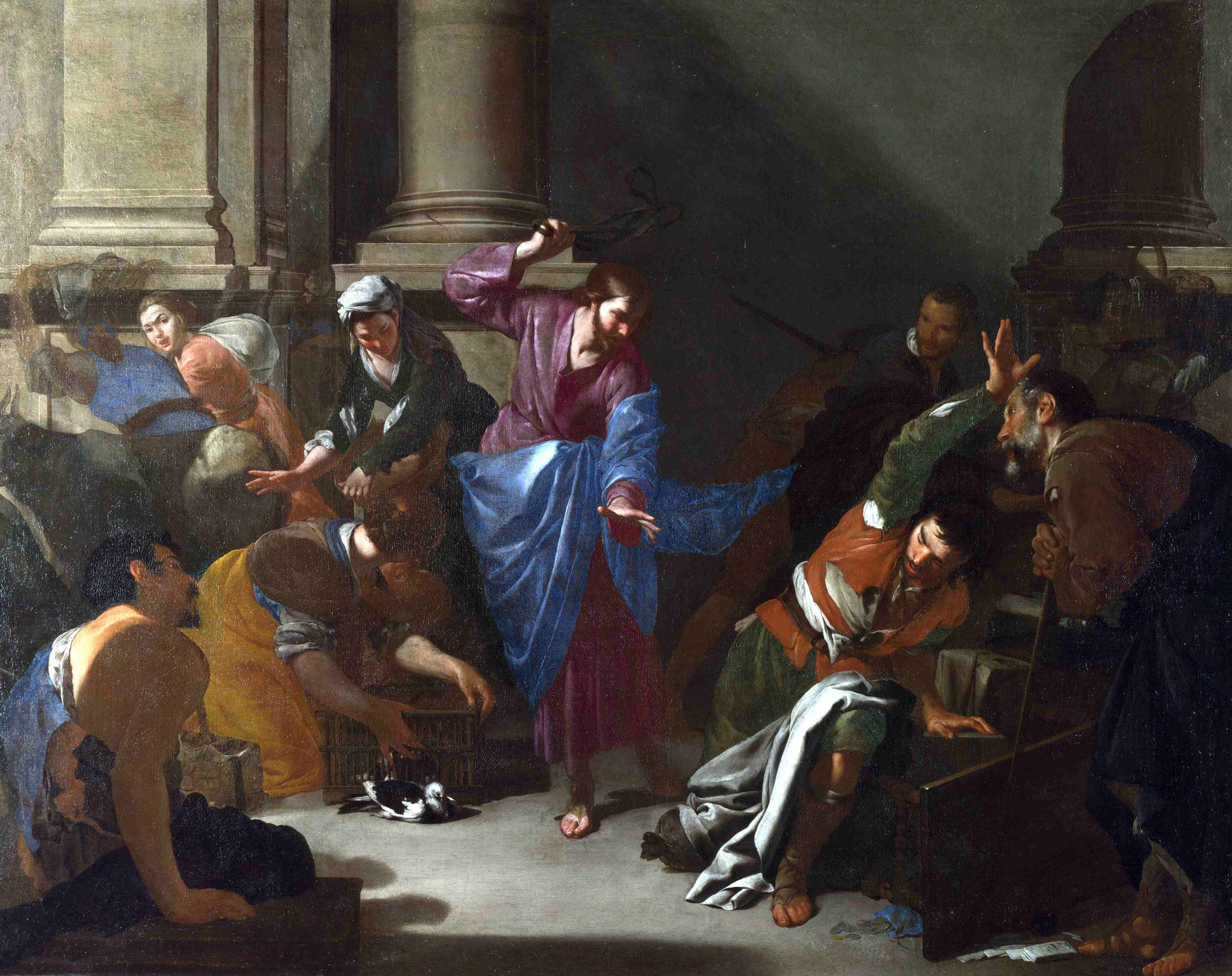 d'après "Le christ chassant les marchands du temple" de Bernardo Cavallino 1645