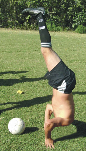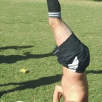 Les célébrations de fin de saison donnent parfois lieu à des cérémonies étranges. Ici, il semblerait que le latéral du Sporting.SemCabeza, Mouhamadou Debout, ait été contraint par ses coéquipiers de passer autant de temps dans cette position qu’il en passe lors d’un match à regarder la gente féminine dans les tribunes.