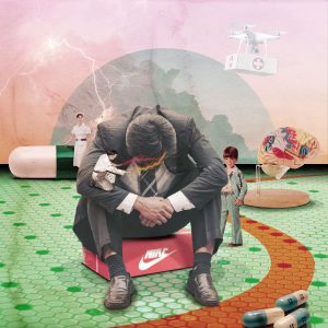 #maladie #trouble #pilule #psychologie #drone #cerveau #éclairs #société #moderne #évolution #collage #visualyon