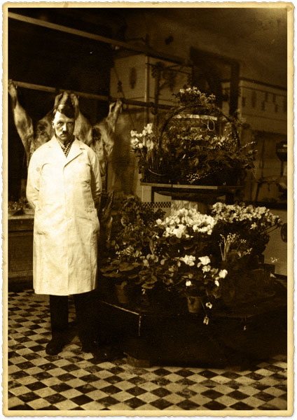 Adolf aimait les fleurs depuis son enfance dans les alpes autrichiennes mais depuis qu’il était arrivé à Munich, il s’était pris de passion pour la découpe de viande. Il avait donc ouvert en 1942 la première bouchefleuriste d’Allemagne et sans doute du monde entier.