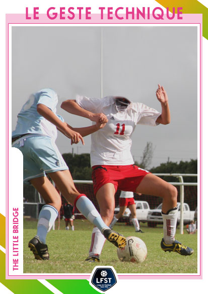 3. A l’aide du pied droit, vous rabattez le ballon pour le faire passer entre les jambes du défenseur