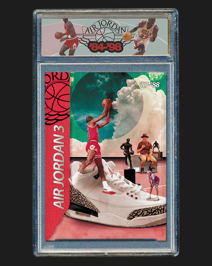 De la Air Jordan 1 de 1984 jusqu’à la Air Jordan XIV de 1998, chaque carte de cette série rend hommage aux paires mythiques portées par Michael Jordan tout au long de sa carrière.