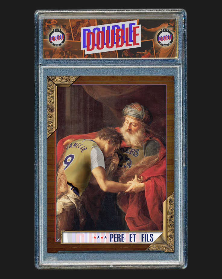 Avec « Père et Fils », SLip capture cette vision entre émotion et mythe, dans une mise en scène inspirée de la peinture classique : le roi et son héritier, entre héritage imposant et avenir prometteur.