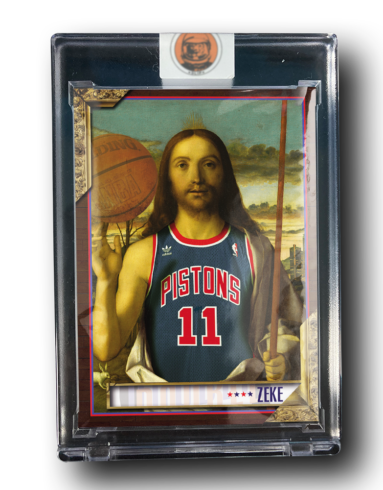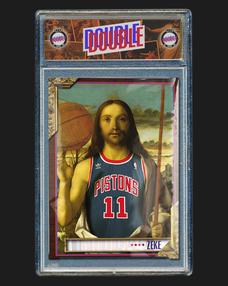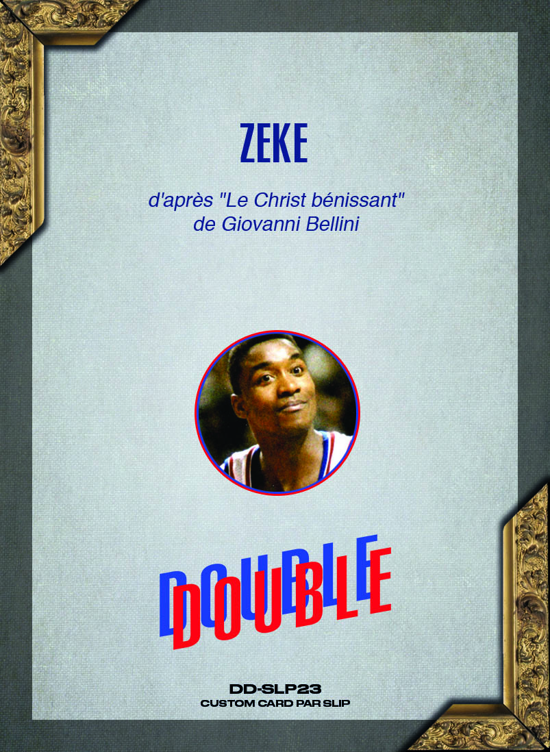 Inspirée de l’exposition Double Double, cette carte DD-SLP23 « Zeke » rend hommage à l’icône des Bad Boys de Detroit, Isiah Thomas. Véritable stratège et leader sur le terrain, Zeke a marqué l’histoire de la NBA avec son talent et son mental d’acier.